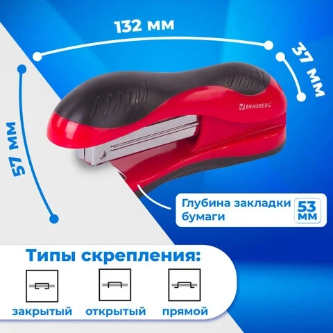 Степлер №24/6, 26/6 BRAUBERG 'JET', до 25 листов, эргономичный, красно-черный, 229688