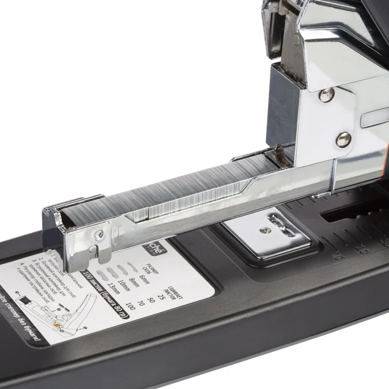 Мощный степлер Attache Selection Vertex W10023 с максимальной толщиной сшивания бумаги до 100 листов. Оснащен функцией закрытого сшивания. Глубина закладки бумаги — 45 мм. Корпус выполнен из пластика черного цвета. Степлер имеет усиленную базу для увеличения стабильности сшивания Heavy Duty.