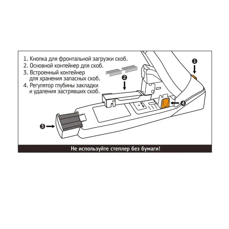 4. Удерживая одну кнопку регулятора (4), одновременно надавите на рычаг степлера для удаления застрявшей скобы.