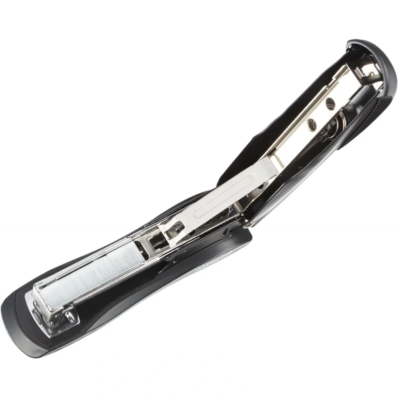 Для эффективного сшивания максимально допустимого объема бумаги необходимо расположить степлер на горизонтальной твердой поверхности, прикладывая усилия, плавно надавить на рычаг (при необходимости двумя руками), разномерно распределяя усилия по поверхности рычага.