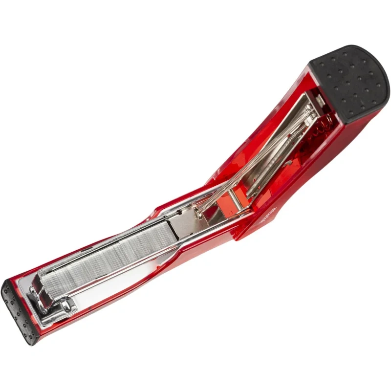 Для эффективного сшивания максимально допустимого объема бумаги необходимо расположить степлер на горизонтальной твердой поверхности, прикладывая усилия, плавно надавить на рычаг (при необходимости двумя руками), разномерно распределяя усилия по поверхности рычага.
