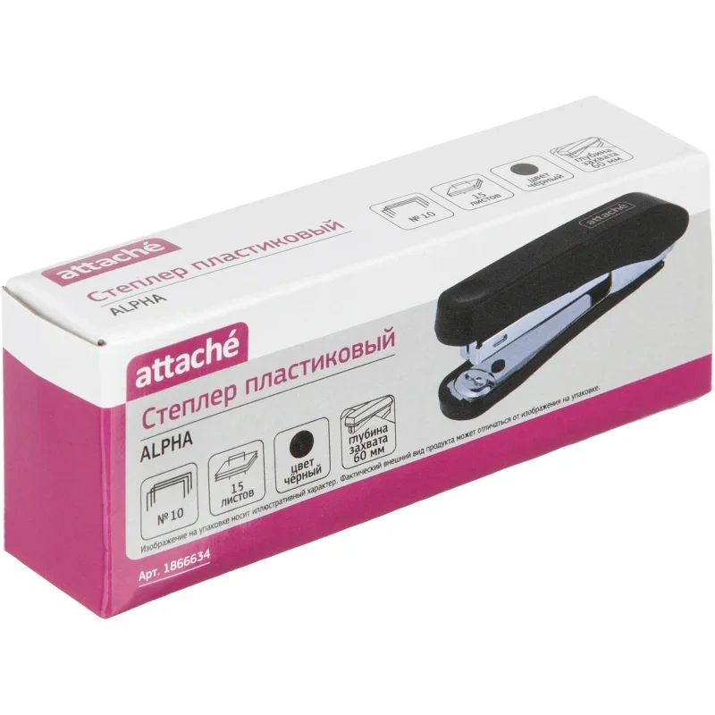 Степлер Attache Alpha (№10) до 15 листов, пластик, черный