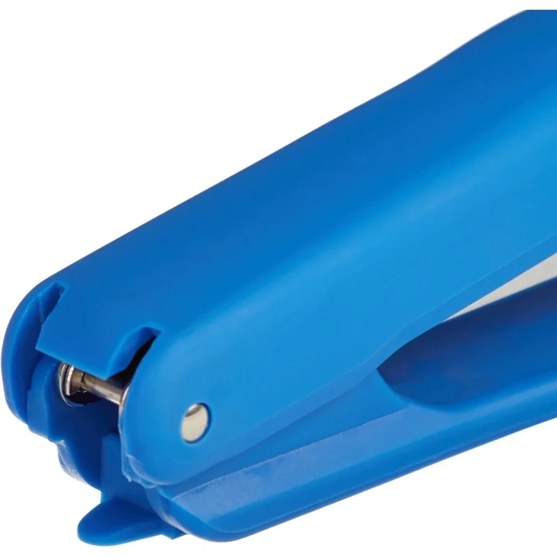 Степлер Attache Comfort один из самых важных помощников для работы с документацией в офисе, образовательных учреждениях и дома. Настольный степлер выполнен в пластиковом корпусе синего цвета и обладает компактными размерами. Корпус имеет мягкое покрытие Soft Touch, что делает комфортным сшивание при длительной работе. Рабочие компоненты изготовлены из высококачественной стали. Степлер Attache Comfort одновременно сшивает до 12 листов бумаги плотностью до 80 г/кв.м. Степлер скрепляет бумагу закрытым типом сшивания, при котором ножки скобы загибаются внутрь. Это дает возможность надежно хранить сшитые документы на протяжении длительного времени. Модель оснащена встроенным антистеплером. Степлер совместим со скобами № 10. Глубина закладки бумаги — 55 мм (5,5 см). Вместимость лотка для скоб: 100 скоб размером № 10. Размер изделия: 110×45×30 мм.