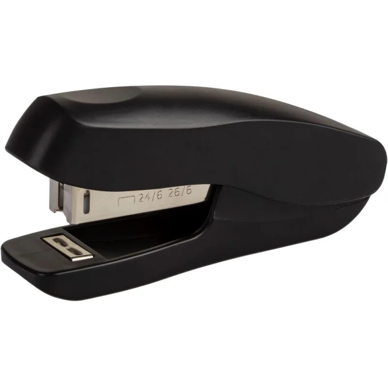 Степлер Attache Economy №24/6, 26/6, до 20 листов, пластик, черный Степлер Attache Economy один из самых важных помощников для работы с документацией в офисе, образовательных учреждениях и дома. Настольный степлер выполнен в пластиковом корпусе черного цвета и обладает средними размерами. Рабочие компоненты изготовлены из высококачественной стали. Степлер Attache Economy одновременно сшивает до 20 листов бумаги плотностью до 70 г/кв.м. Позволяет производить сшивание закрытым способом. Степлер совместим со скобами № 24/6 и 26/6. Глубина закладки бумаги - 38 мм (3.8 см). Размер изделия: 110x50x30 мм. Для эффективного сшивания максимально допустимого объема бумаги необходимо расположить степлер на горизонтальной твердой поверхности, прикладывая усилия, плавно надавить на рычаг (при необходимости двумя руками), разномерно распределяя усилия по поверхности рычага. Товар относится к ценовому сегменту ?суперэконом?. Имеет упрощенные характеристики и более простую упаковку. Отвечает основным требованиям потребления.