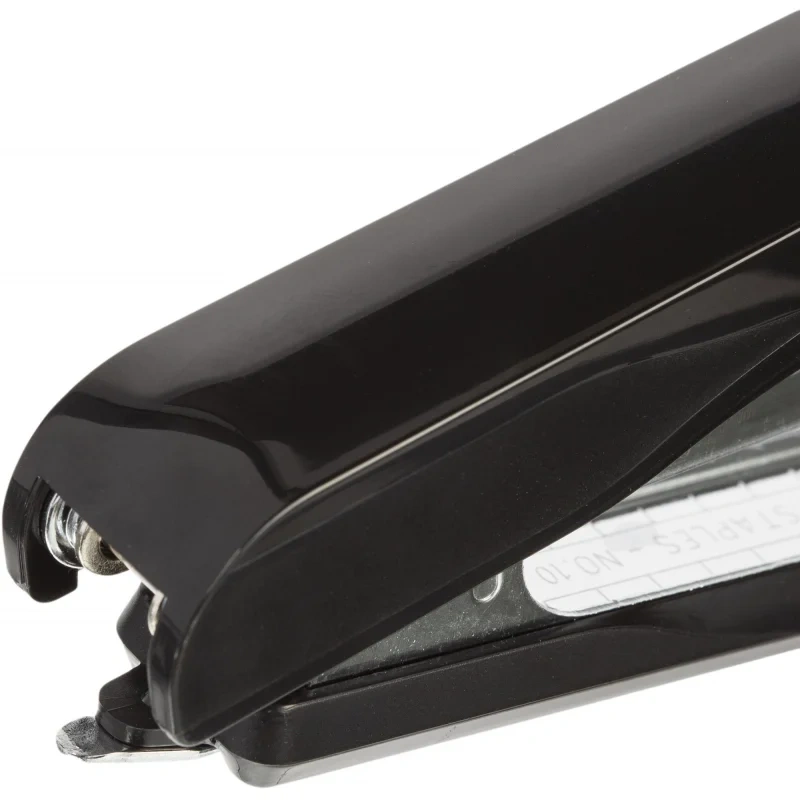 Для эффективного сшивания максимально допустимого объема бумаги необходимо расположить степлер на горизонтальной твердой поверхности, прикладывая усилия, плавно надавить на рычаг (при необходимости двумя руками), разномерно распределяя усилия по поверхности рычага.
