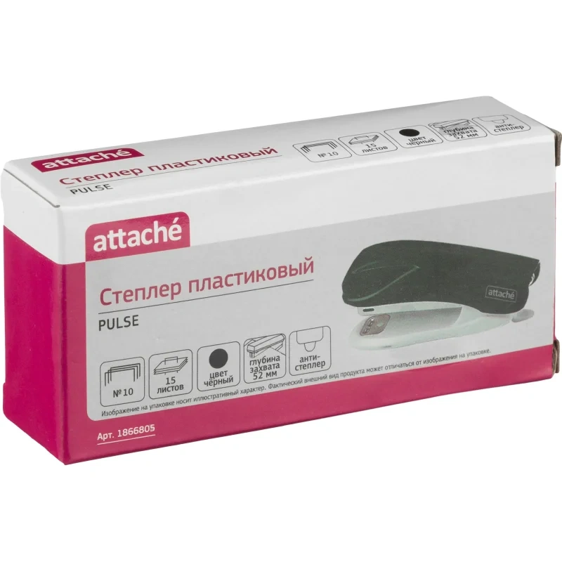 Степлер Attache Pulse (№10) до 15 листов, антистеплер, пластик, черный