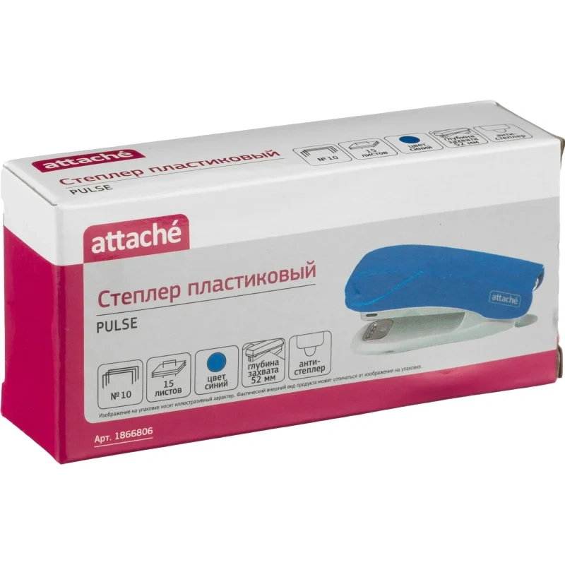 Степлер Attache Pulse (№10) до 15 листов, антистеплер, пластик, синий