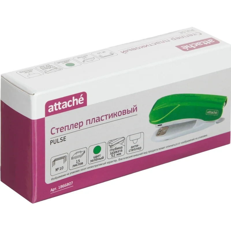 Степлер Attache Pulse (№10) до 15 листов, антистеплер, пластик, зеленый