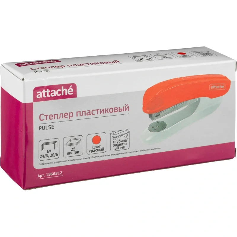 Степлер Attache Pulse(№24/6-26/6) до 25 листов, пластик, красный