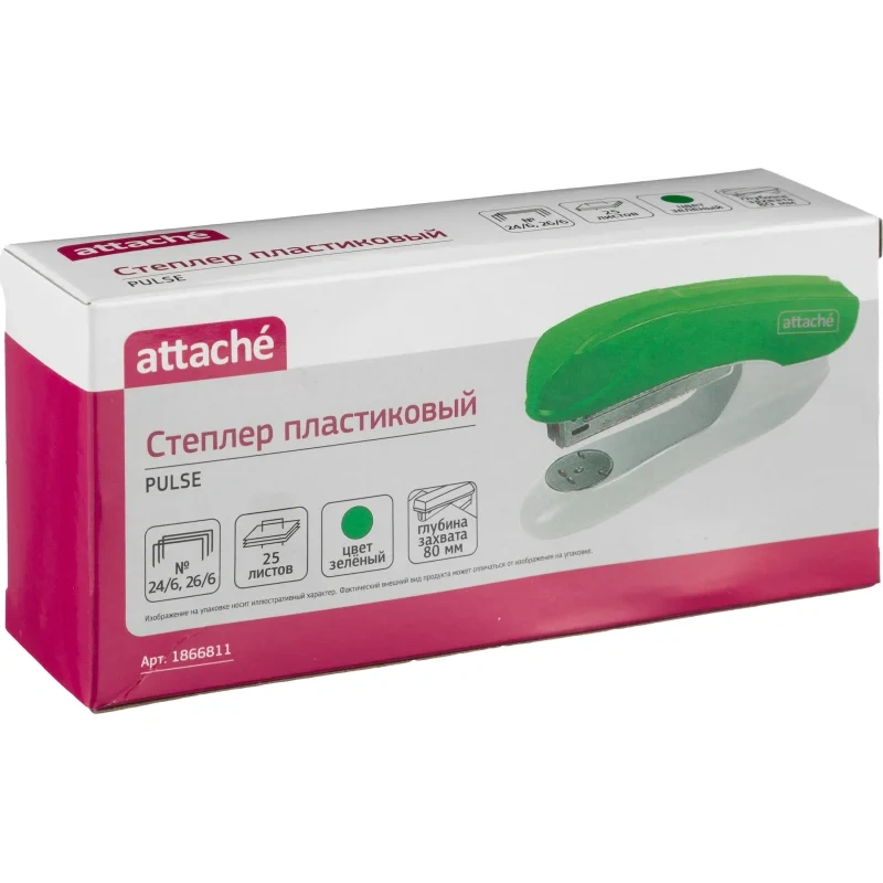 Степлер Attache Pulse(№24/6-26/6) до 25 листов, пластик, зеленый