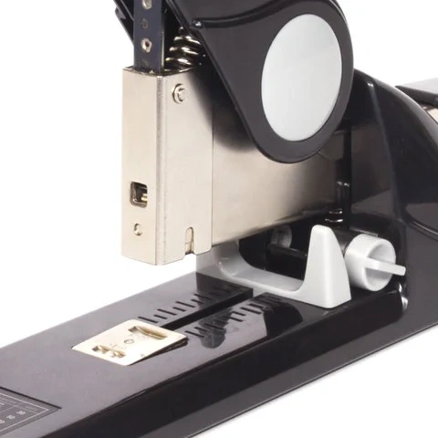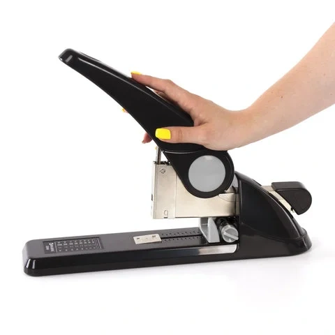 Рабочий механизм выполнен из металла, корпус - из пластика черного цвета. Способен скрепить до 200 листов бумаги. Подходит для скоб № 24/6, 26/6, № 23/15, № 23/17, № 23/20, № 23/8, 24/8, № 23/23, № 23/10, № 23/24, № 23/13. Глубина закладки бумаги регулируется - до 61 мм. Закрытый вид сшивания. Фронтальная загрузка скоб. Оснащен устройством для удаления испорченных скоб.