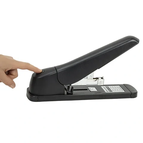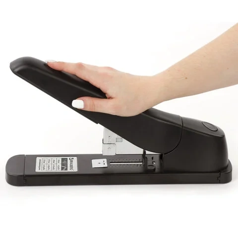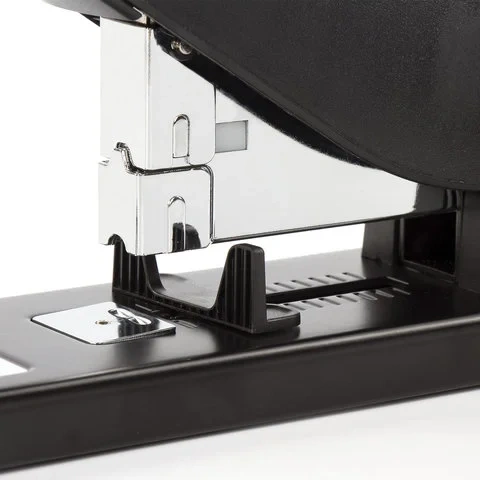 Рабочий механизм выполнен из металла, корпус - из пластика черного цвета. Способен скрепить до 80 листов бумаги. Подходит для скоб № 24/6, 26/6, № 23/8, 24/8, № 23/10, № 23/13. Глубина закладки бумаги регулируется - до 63 мм. Закрытый вид сшивания. Фронтальная загрузка скоб.