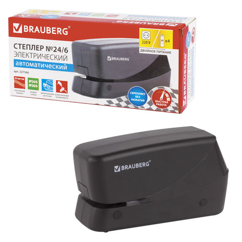 Степлер Brauberg электрический №24/6, до 20 листов, черный