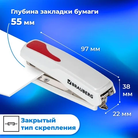 Степлер BRAUBERG 'Super' высокого качества надолго станет незаменимым помощником при работе с документацией.