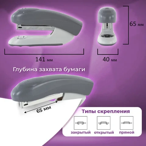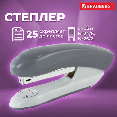 Степлер Brauberg Flagman №24/6, до 25 листов, серый