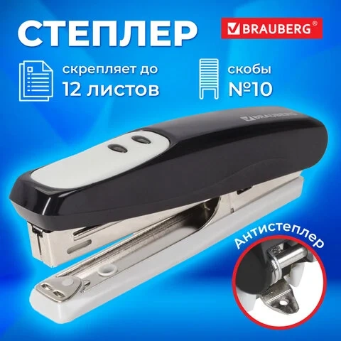 Степлер Brauberg Germanium №10, до 12 листов, черный