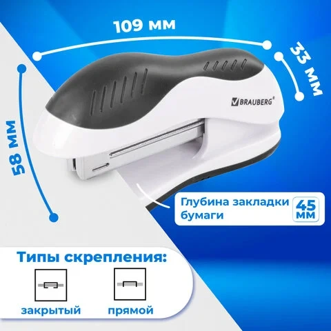 Степлер Brauberg Jet белый-черный, до 15 листов