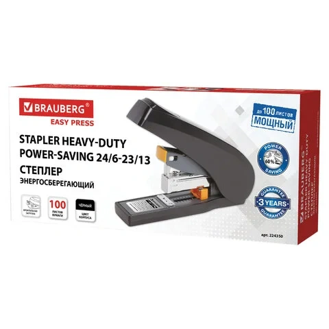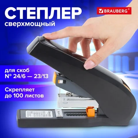 Степлер Brauberg Leistung №24/6-23/13, до 100 листов, черно-желтый