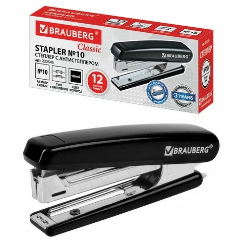 Степлер Brauberg Nero №10, до 12 листов, черный