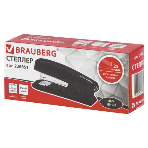 Степлер Brauberg Option №24/6, до 25 листов, черный, мини