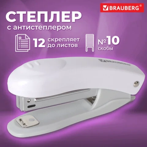 Степлер Brauberg Original №10, до 12 листов, с антистеплером, белый