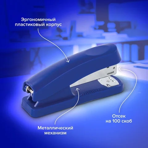 Степлер Brauberg Standard+ №24/6, 26/6, до 30 листов, синий