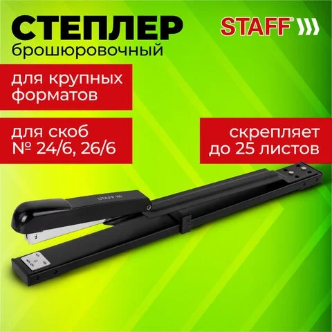 Степлер брошюровочный №24/6, 26/6 STAFF 'Manager', до 25 листов, черный, 272753