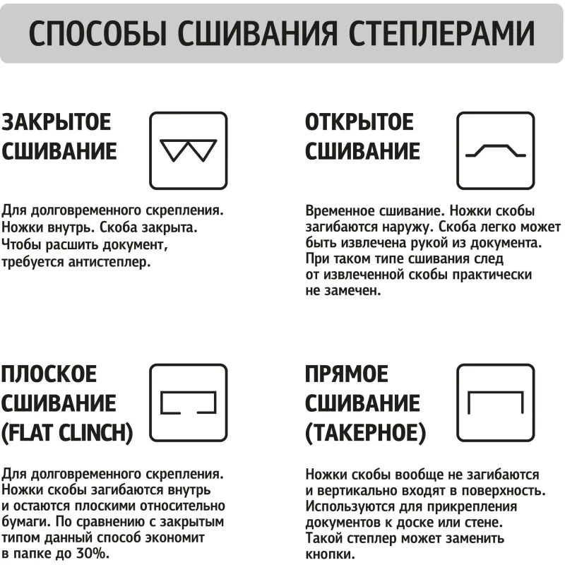 | Виды сшивания степлером | закрытый |