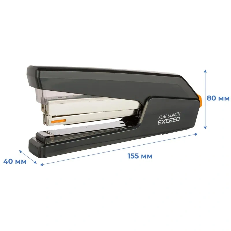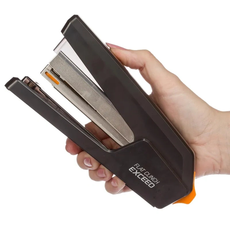 Степлер Deli Effortless в чёрном корпусе и со скобами в комплекте. Рабочие компоненты изготовлены из высококачественной стали. Настольный новый степлер Deli предназначен для надёжного и качественного скрепления документов в офисе и дома. Полное противоскользящее основание для стабильной работы за столом. Усовершенствованный стильный дизайн. При работе с таким степлером требуется прикладывать меньше усилий по сравнению с обычными моделями. Виды сшивания степлером: закрытый. Загрузка штапеля для скоб выдвигается путём нажатии кнопки, находящейся на корпусе. Размер степлера: 155×80×40 мм. Максимальное количество скрепляемых листов: 30 плотностью до 80 г/кв.м. Подходящие скобы: 24/6 26/6. Приятный и оригинальный дизайн порадует каждого покупателя.