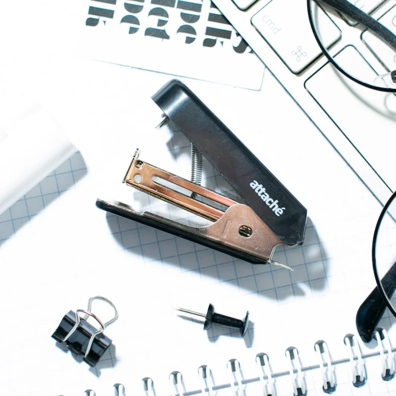 Мини-степлер Attache (Attache Economy) подходит для работы с документами в офисе и дома. Настольный степлер выполнен в пластиковом корпусе чёрного цвета. Степлер Attache Economy одновременно сшивает до 7 листов бумаги плотностью до 80 г/кв.м. Степлер скрепляет бумагу закрытым типом сшивания, при котором ножки скобы загибаются внутрь. Это даёт возможность надёжно хранить сшитые документы на протяжении длительного времени. Модель оснащена антистеплером. Степлер совместим со скобами 10. Глубина закладки бумаги — 28 мм (2,8 см). Вместимость лотка для скоб: 50 скоб размером 10. Размер изделия: 58×20×30 мм.