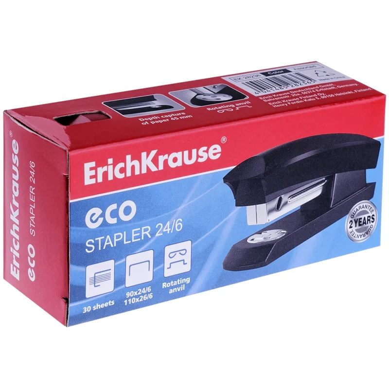Степлер Erich Krause Eco №24/6, до 20 листов, ассорти, 28236