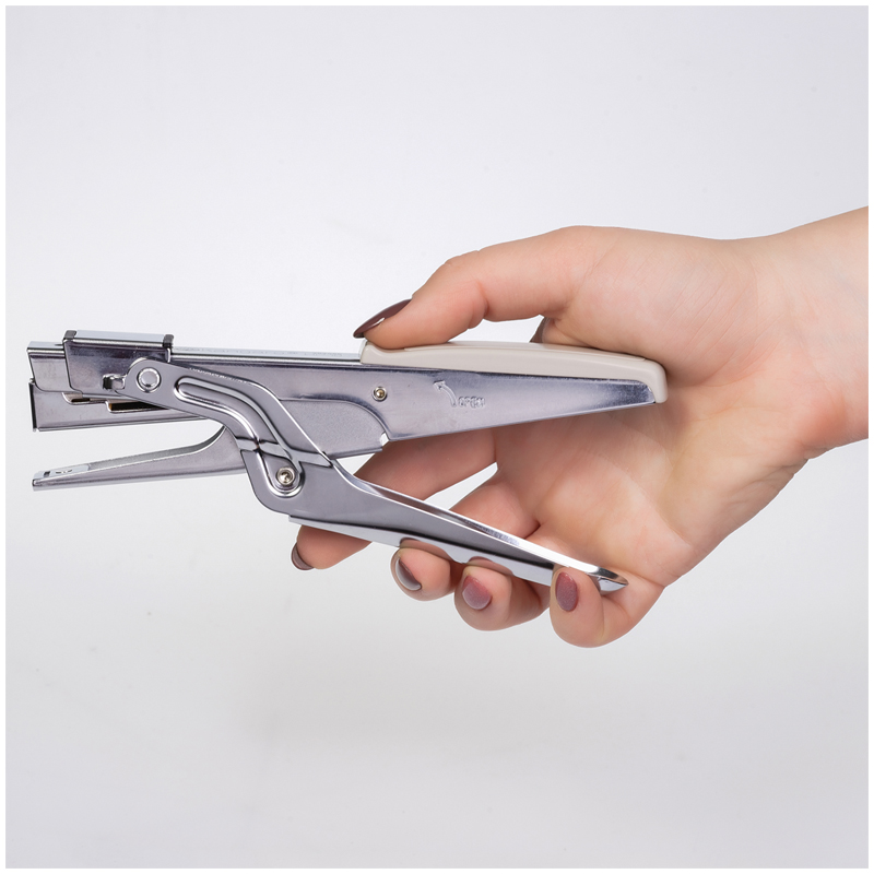 Ручной степлер Kangaro HP-10 для сшивания листов навесу. Корпус выполнен из металла, а пластиковая ручка гарантирует удобное использование. Незаменим на складе и при оформительских работах. Используется скоба №10.