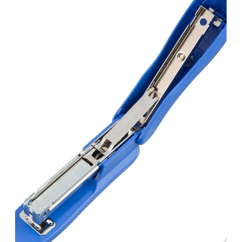 Для эффективного сшивания максимально допустимого объема бумаги необходимо расположить степлер на горизонтальной твердой поверхности, прикладывая усилия, плавно надавить на рычаг (при необходимости двумя руками), разномерно распределяя усилия по поверхности рычага.