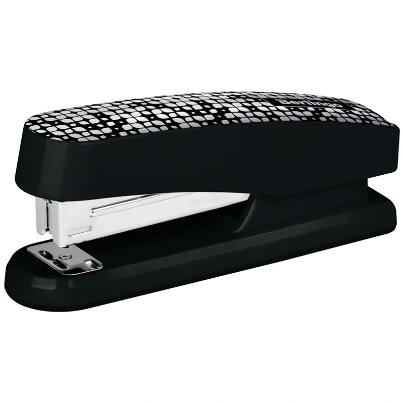 Степлер Essentials Desk настольный. Одновременно сшивает до 25 листов: плотность бумаги 80 гр/м.кв - 20 листов, плотность бумаги 70 гр/м.кв - 25 листов, глубина захвата 57 мм. Скобы 24/6, 26/6 (вместимость скоб: 100 штук 24/6 или 140 штук 26/6). Выполняет 3 функции: постоянное сшивание, временное сшивание, степлер-такер, нескользящее основание. Открывается на 180 градусов, легкая загрузка скоб. Цвет черный с оранжевой вставкой в зоне давления. Гарантия 5 лет. Для эффективного сшивания максимально допустимого объема бумаги необходимо расположить степлер на горизонтальной твердой поверхности, прикладывая усилия, плавно надавить на рычаг (при необходимости двумя руками), разномерно распределяя усилия по поверхности рычага.