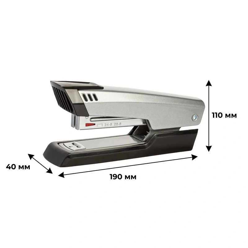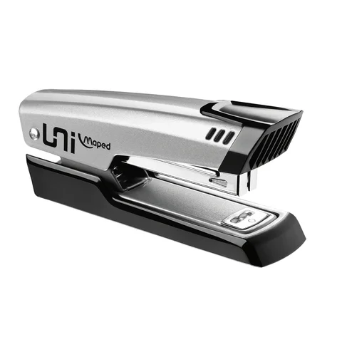 Степлер средний Maped Universal Metal, настольный + скобы в комплекте (400 штук). Сшивает до 25 листов: плотность 80 гр/м.кв - 20 листов, плотность 70 гр/м.кв. - 25 листов, глубина захвата 60 мм. Скобы 24/6 (вместимость 100 штук) или 26/6 (вместимость 130 штук). Полностью металлический корпус и механизм. Металлический толкатель. Закрытый вид сшивания. Пластиковые накладки в зоне давления. Гарантия 5 лет. Размер изделия: ДхШхВ 190x110x40 мм. Для эффективного сшивания максимально допустимого объема бумаги необходимо расположить степлер на горизонтальной твердой поверхности, прикладывая усилия, плавно надавить на рычаг (при необходимости двумя руками), разномерно распределяя усилия по поверхности рычага. Товар поставляется в нескольких вариантах цвета/дизайна (без возможности выбора).