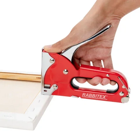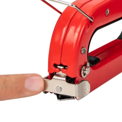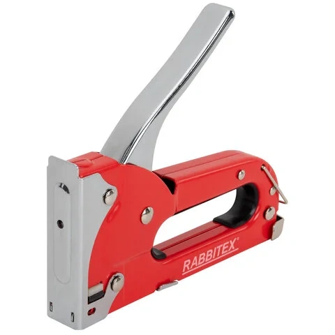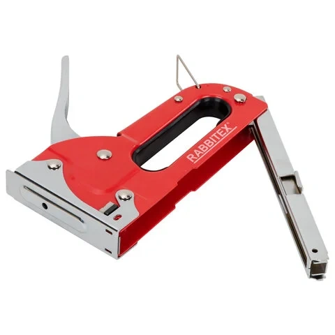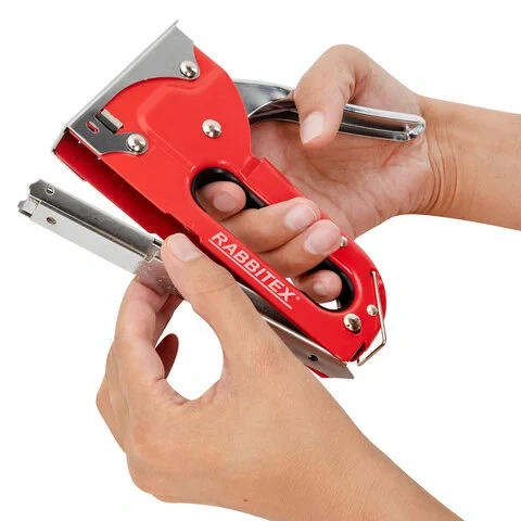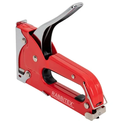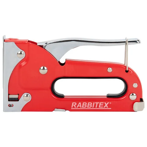 Степлер мебельный RABBITEX изготовлен из закаленной углеродистой стали. Оснащен мощным бойком, эргономичной рукояткой с надежным хватом, а также скобой-фиксатором для предотвращения самопроизвольного срабатывания степлера. Используется со скобами типа 53 длиной (высотой ножки) 4 / 6 / 8 мм.