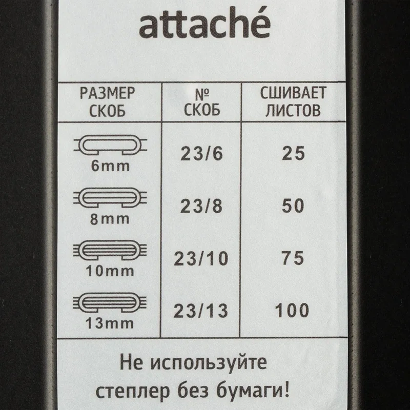 Степлер мощный Attache (Attache Economy) до 100 листов черный (скобы 23/6, 23/8, 23/10, 23/13)