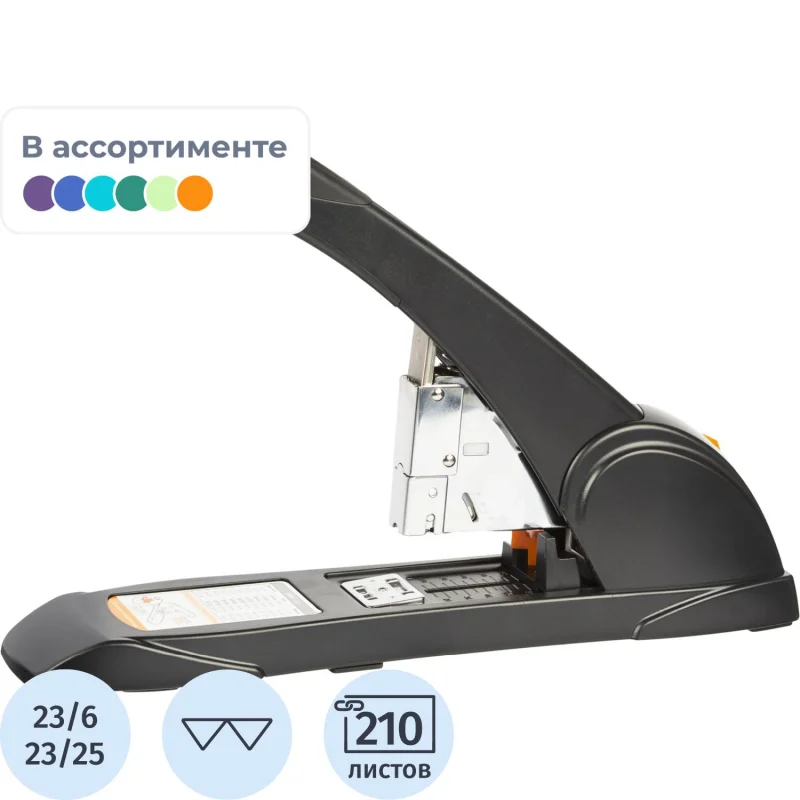 Степлер мощный Deli E0395(N23/6-23/25)до 210лис,энергосбер,пласт/мет,ассор