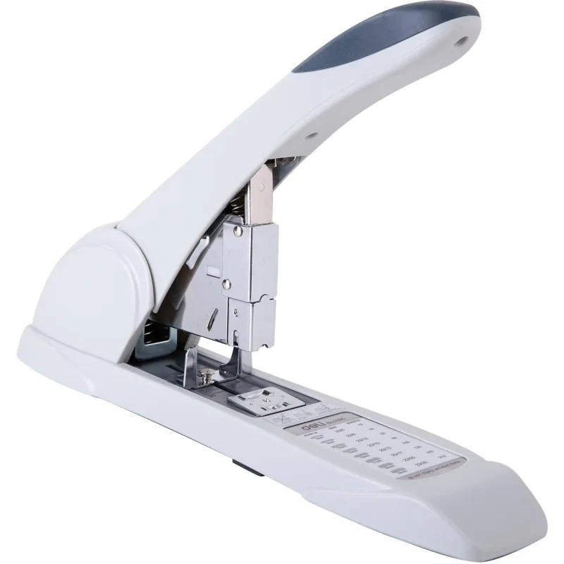 Невероятно мощный степлер Deli предназначен для работы с большим объемом документов. При работе со степлером требуется прикладывать на 60% меньше усилий по сравнению с обычными моделями. Рабочие компоненты изготовлены из высококачественной стали. Полное противоскользящее основание для стабильной работы за столом. Усовершенствованный стильный дизайн. Приятный и оригинальный дизайн порадует каждого покупателя. Характеристики: Виды сшивания степлером: закрытый, открытый. Максимальное количество скрепляемых листов: 210 плотностью до 80 г/кв.м Тип и размер используемых скоб: N23/6-23/25 Внимание! Товар поставляется в различных вариантах цвета без возможности выбора.
