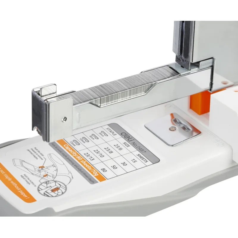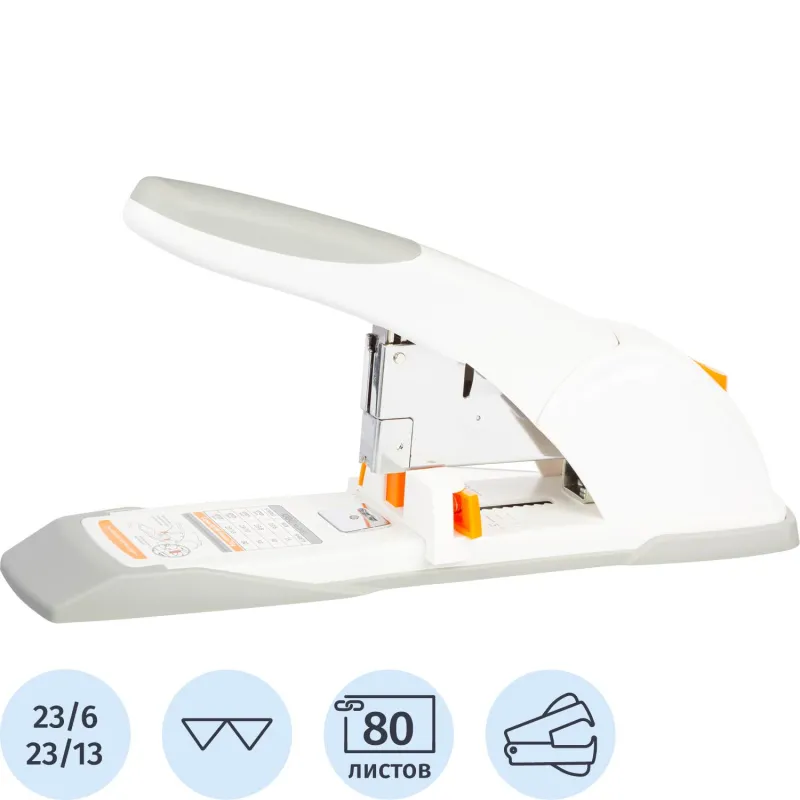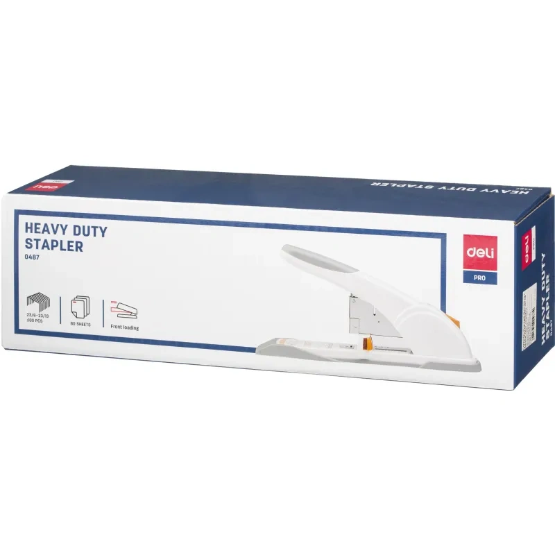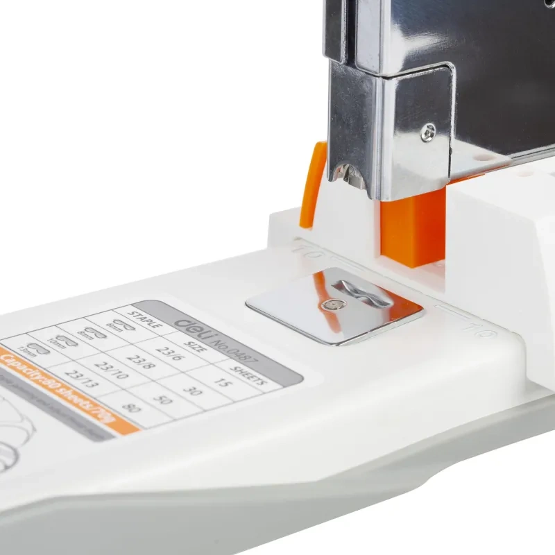 Невероятно мощный степлер Deli предназначен для работы с большим объемом документов. При работе со степлером требуется прикладывать на 60% меньше усилий по сравнению с обычными моделями. Рабочие компоненты изготовлены из высококачественной стали. Полное противоскользящее основание для стабильной работы за столом. Усовершенствованный стильный дизайн. Цвет — белый. Максимальное количество скрепляемых листов: 80 плотностью до 80 г/кв.м. Приятный и оригинальный дизайн порадует каждого покупателя.