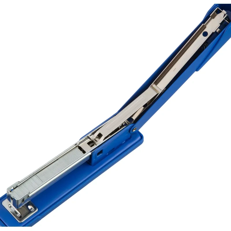 Для эффективного сшивания максимально допустимого объёма бумаги необходимо расположить степлер на горизонтальной твёрдой поверхности, прикладывая усилия, плавно надавить на рычаг (при необходимости двумя руками), разномерно распределяя усилия по поверхности рычага.