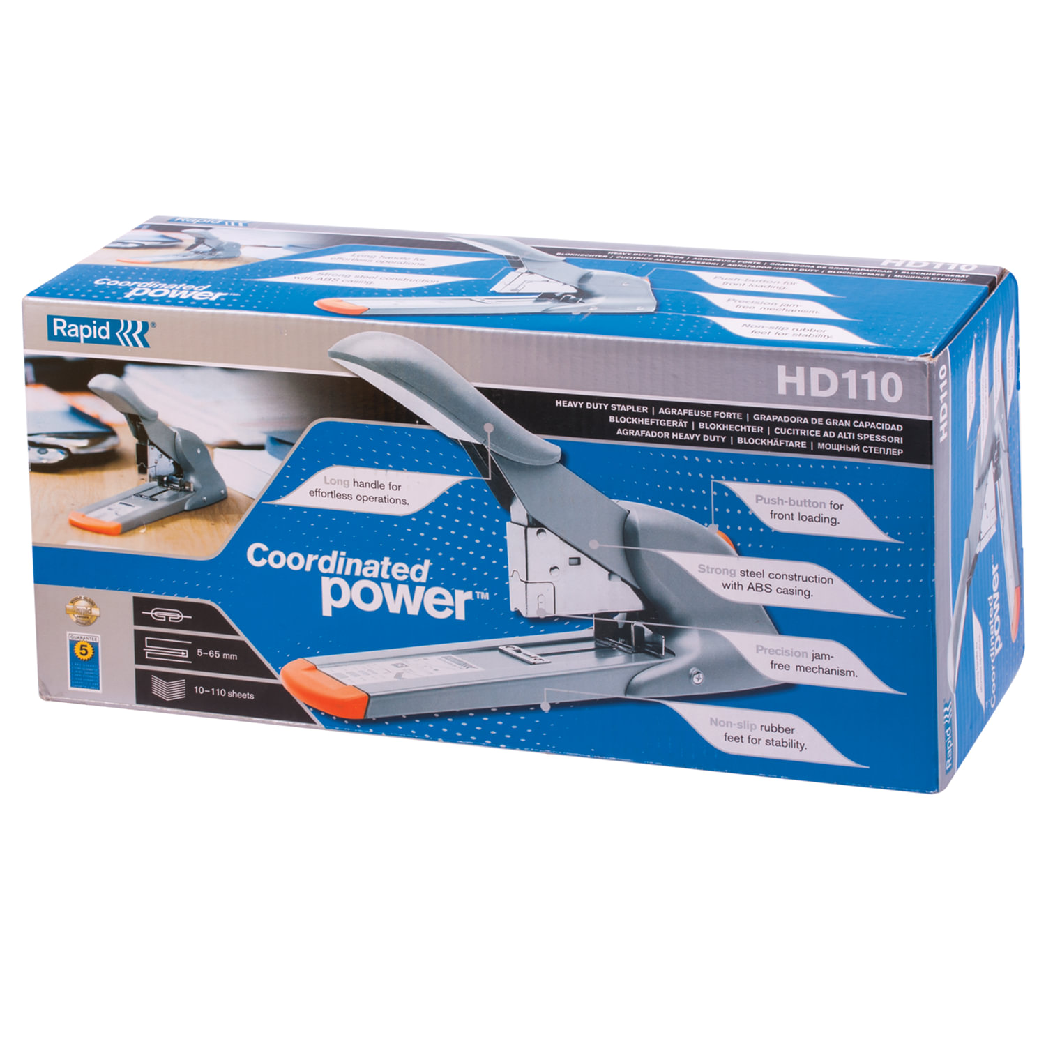 Степлер Rapid Fashion HD110 №23/8-23/24, до 110 листов, мощный, серебристый-оранжеый