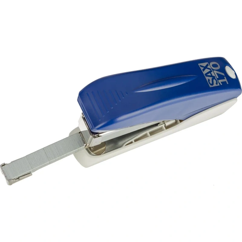 Степлер средний Sax 170 одновременно сшивает до 40 листов плотностью 80 г/кв.м. Позволяет производить сшивание закрытым способом. Эргономичный тип конструкции позволяет прилагать на 60% меньше усилий. Глубина закладки бумаги — 63 мм (6.3 см). Модель оснащена встроенным антистеплером. Корпус выполнен из металла и пластика, цвет синий. В степлере используются скобы № 24/6, 26/6. Размер изделия: 154×106×48 мм. Вместимость скоб — 100 штук.