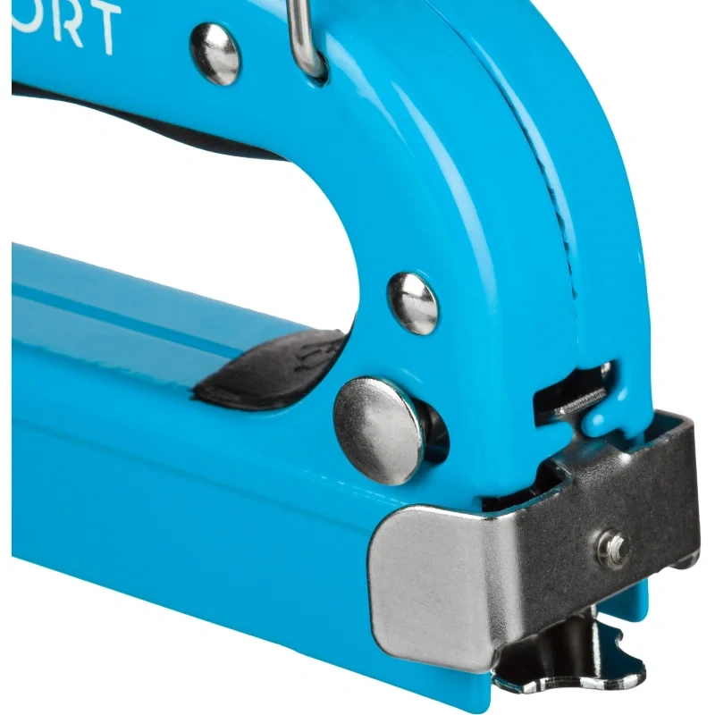 Степлер строительный Topfort многофункциональный с регулировкой. Применяется для крепления листового материала к дереву, фанере, ДСП; для закрепления обивки мебели, укрепления плакатов, закрепления проволочной сетки и прочее. Инструмент оснащен винтовым регулятором силы удара, за счет которого можно легко изменять давление на скобу при использовании. Регулировка позволяет подобрать правильную силу под конкретный материал, с которым производятся работы. В комплекте набор скоб. Преимущества изделия: — Эргономичная рукоятка облегчает использование и делает захват более комфортным — Стальная конструкция корпуса делает степлер надежным и комфортным в использовании Характеристики изделия: — Материал корпуса — сталь — Тип скоб — 57 (4–14 мм) и тип 36 (10–12 мм), гвозди (10–14 мм)