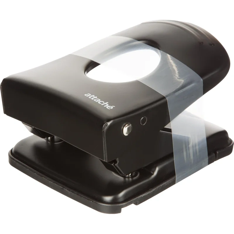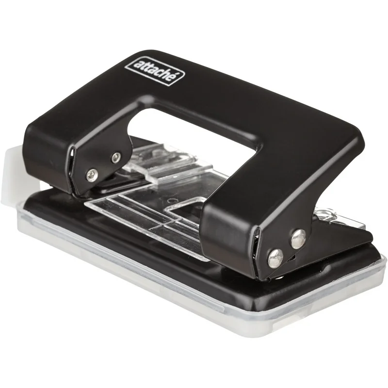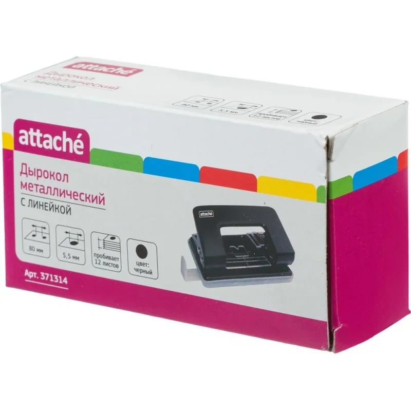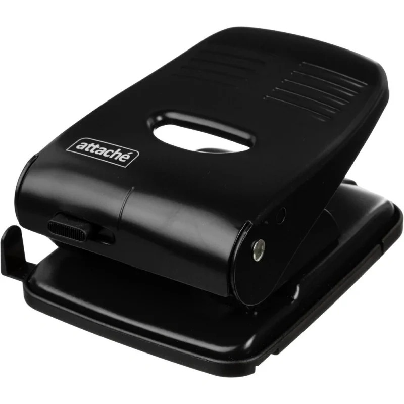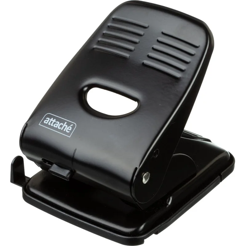Дырокол Attache 6304 до 12 листов, черный, с линейкой