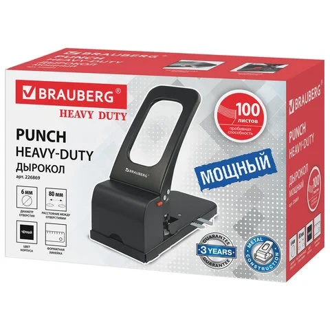 Дырокол Brauberg Heavy duty до 100 листов, мощный, черный