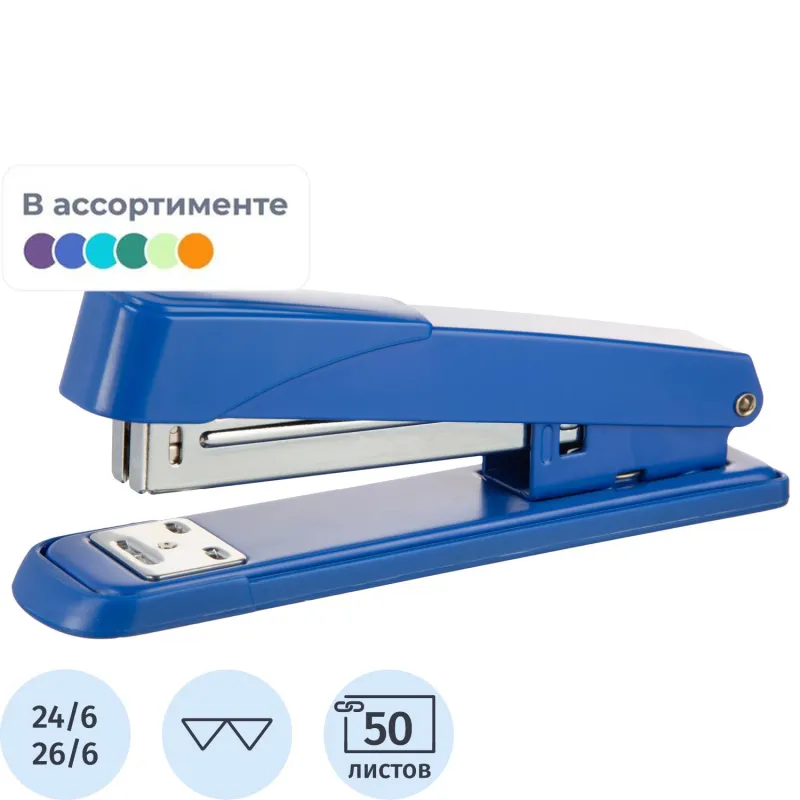 Степлер №24/6, 26/6 BRAUBERG 'METROPOLIS', до 30 листов, ассорти, 228753