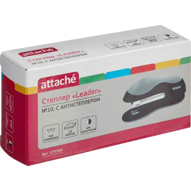 Степлер Attache Leader №10, до 15 листов, черно-серый