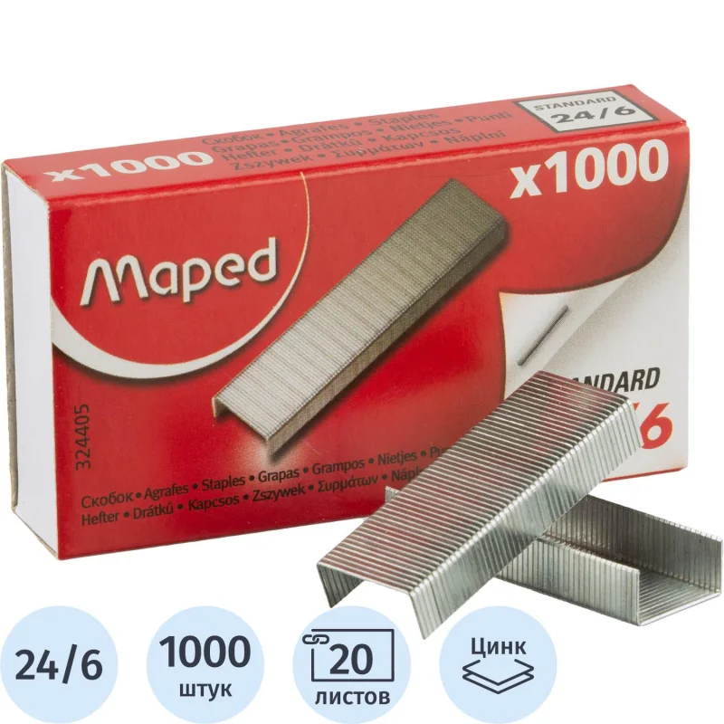 Скобы для степлера Maped №24/6, никелированные, 1000шт, 324405