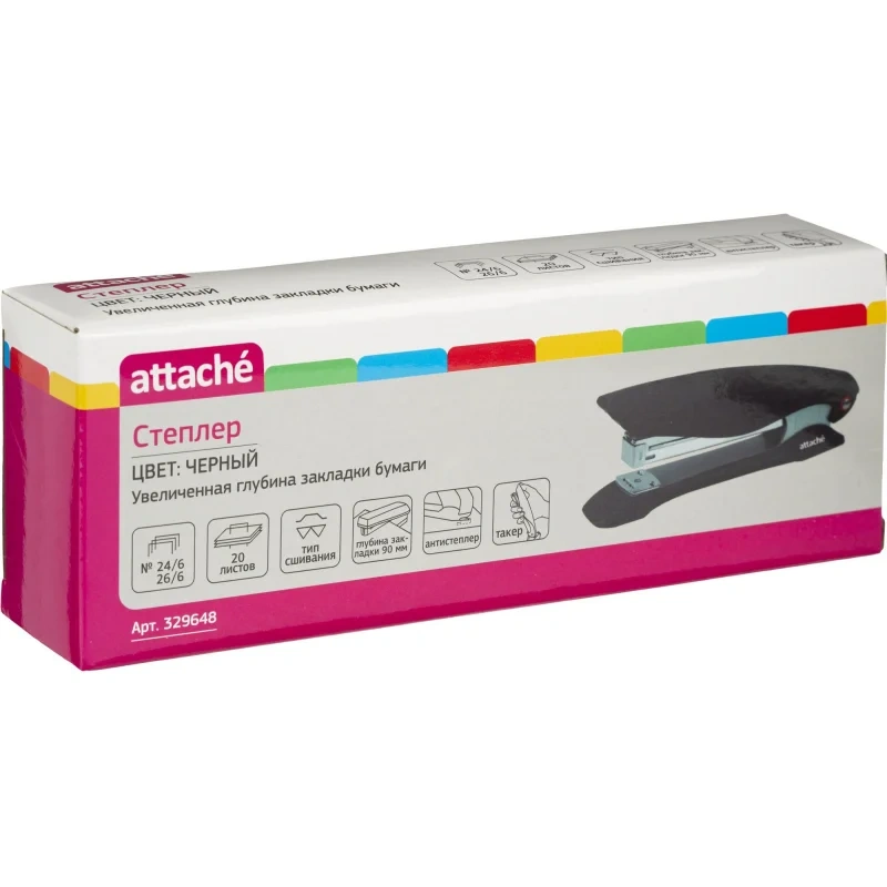 Степлер Attache №24/6, до 20 листов, черный, увеличенная глубина